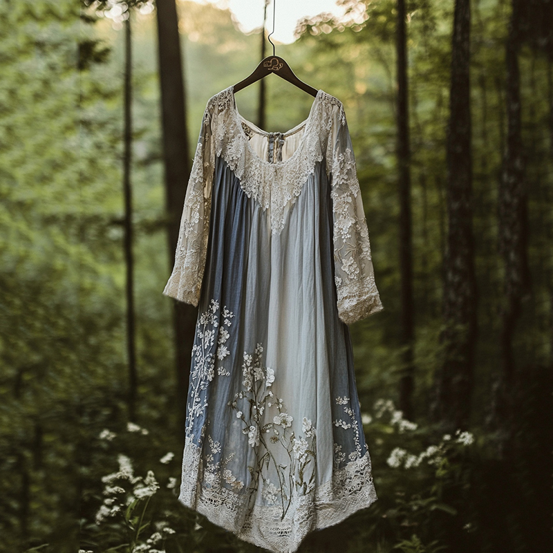 Floral Embroidered Pattern Linen Contrast Color Maxi Dress