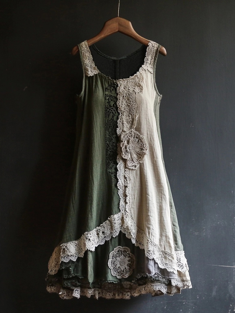 Vintage Lace Patchwork Comfy Linen Tank Dress