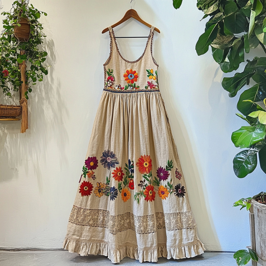Women's Bohemian Floral Embroidered Long Suspender Skirt