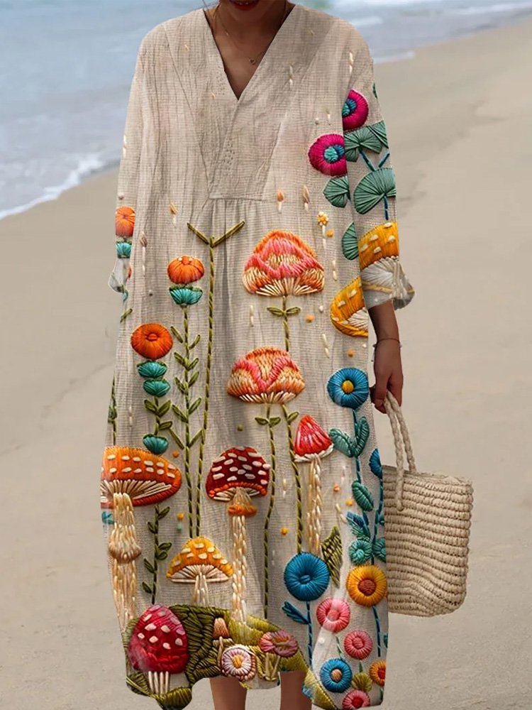 Women's Embroidery Floral Art Print Dress